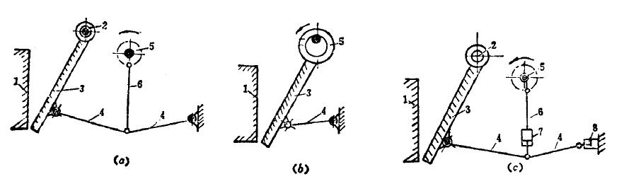 (a)-簡(jiǎn)擺鄂式破碎機(jī);(b)-復(fù)擺鄂式破碎機(jī);(c)-液壓鄂式破碎機(jī)